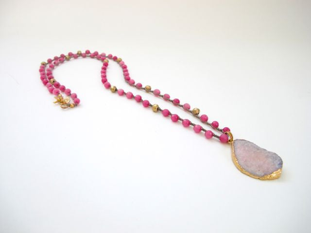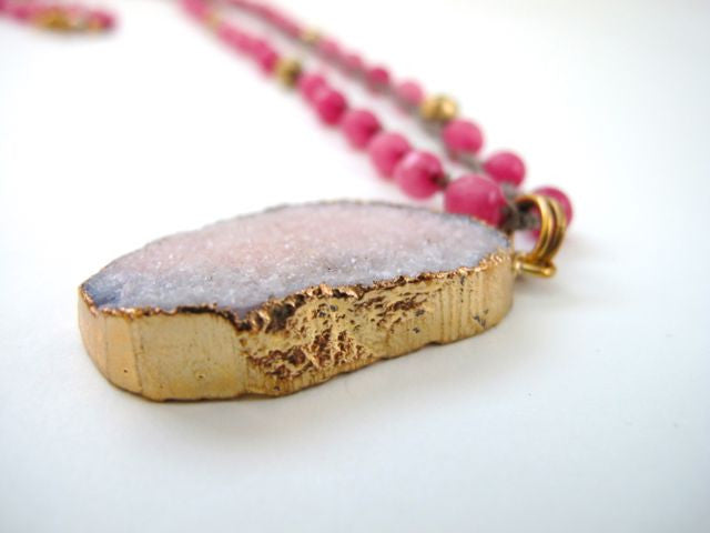 Rich Deep Pink Beads with Druze Pendant